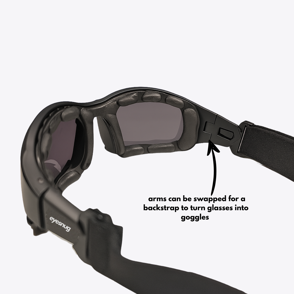 Our most snug-fitting sunglasses — featuring wraparound frame with foam inserts and a detachable strap to block wind, dust, pollen, and other irritants. Trusted for fishing, watersports, motorbiking, and breezy coastal walks.