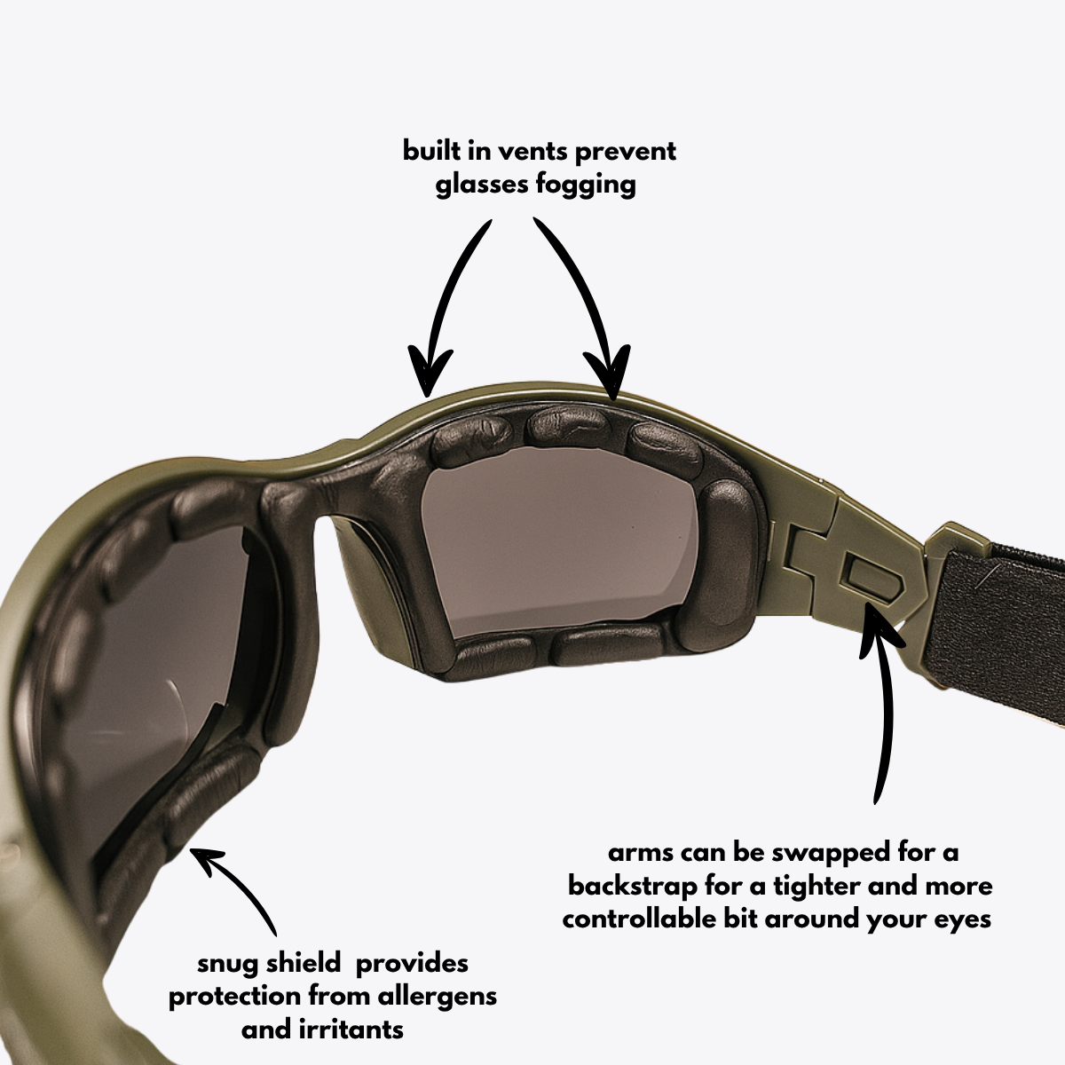 Our most snug-fitting sunglasses — featuring wraparound frame with foam inserts and a detachable strap to block wind, dust, pollen, and other irritants. Trusted for fishing, watersports, motorbiking, and breezy coastal walks.