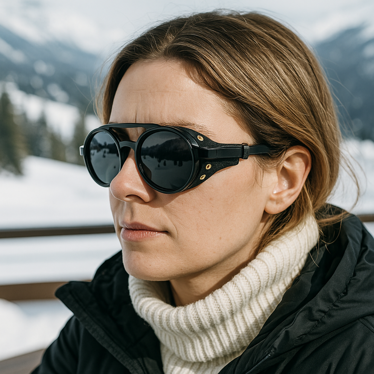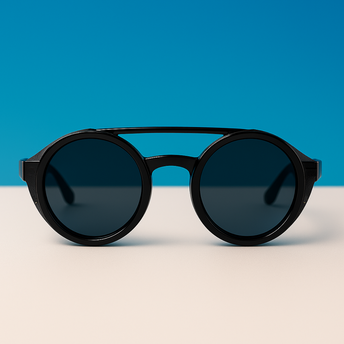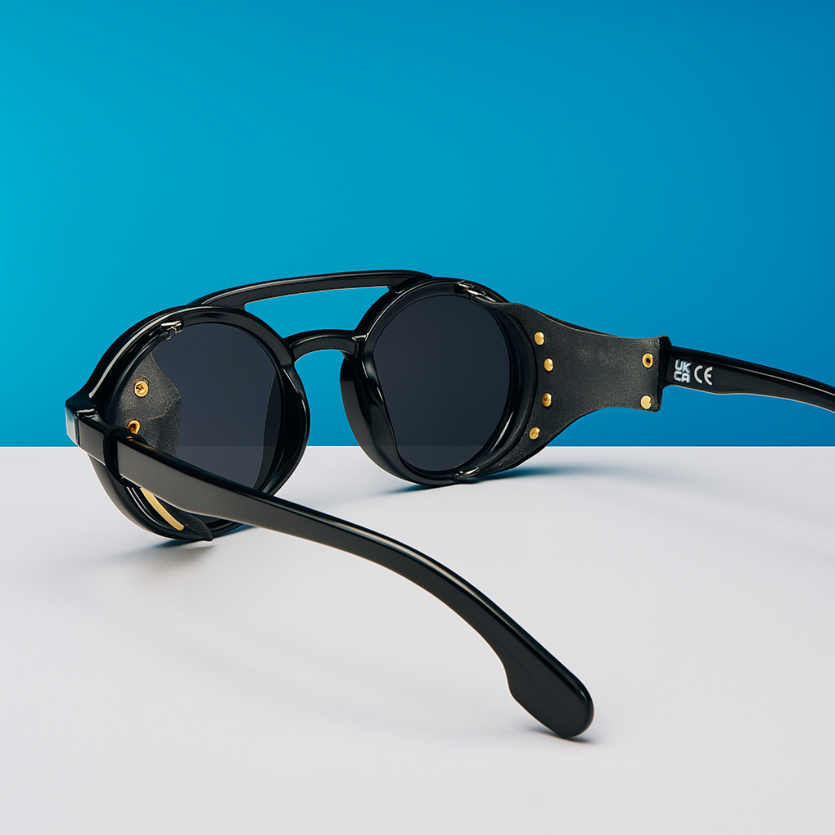 Sleek and versatile, these jet-black sunglasses feature classic lines with bold side shields for added wind protection. A timeless look with everyday comfort.