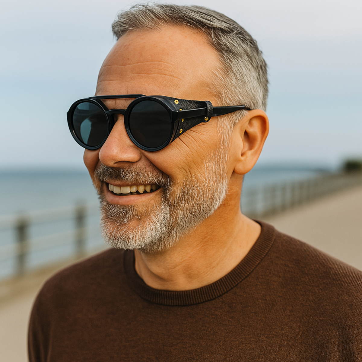 Timeless in style yet built for comfort, these classically designed sunglasses feature discreet side shields that provide extra protection against wind and airborne irritants. Ideal for everyday wear or active days outdoors, they combine effortless sophistication with practical defence for sensitive eyes.
