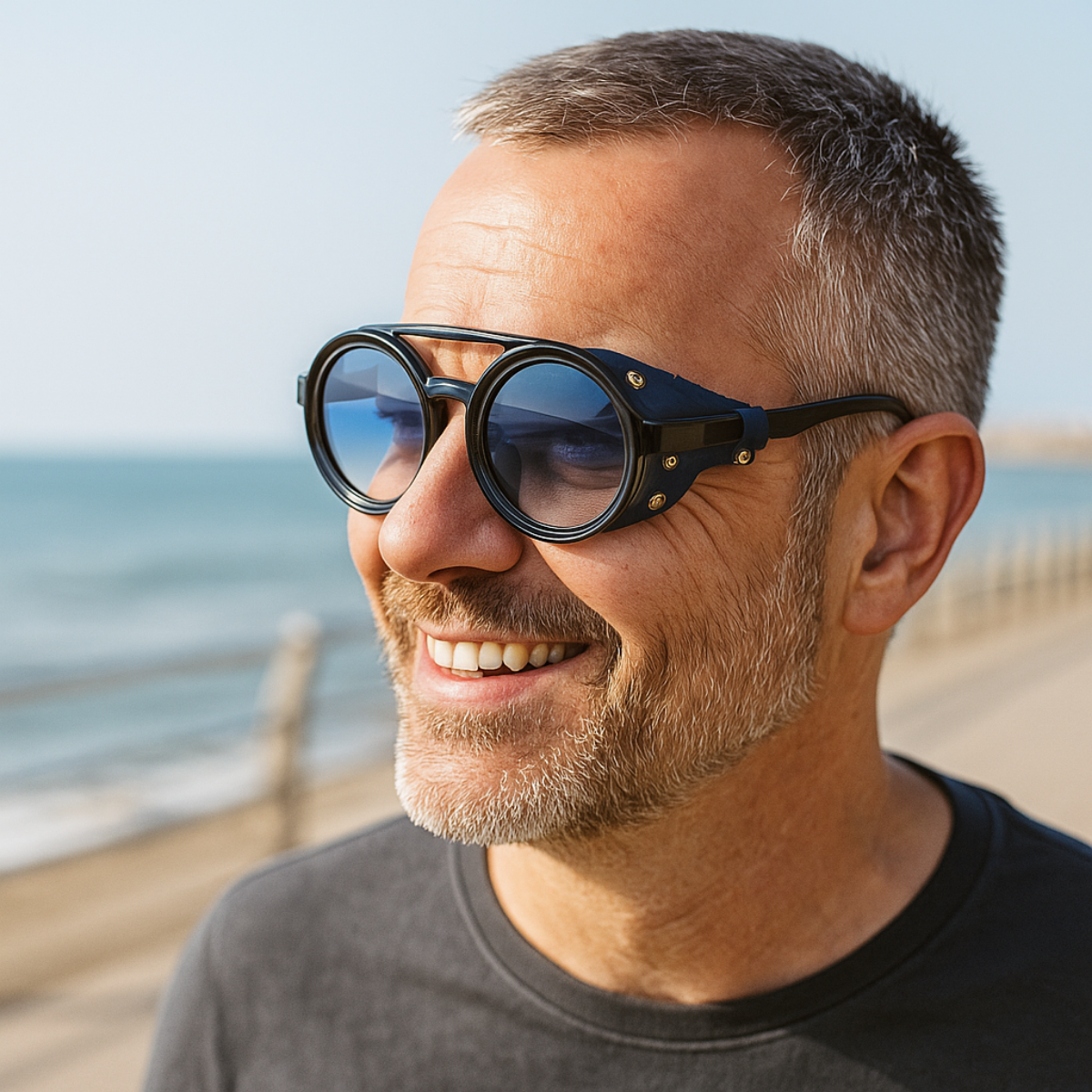 Timeless in style yet built for comfort, these classically designed sunglasses feature discreet side shields that provide extra protection against wind and airborne irritants. Ideal for everyday wear or active days outdoors, they combine effortless sophistication with practical defence for sensitive eyes.