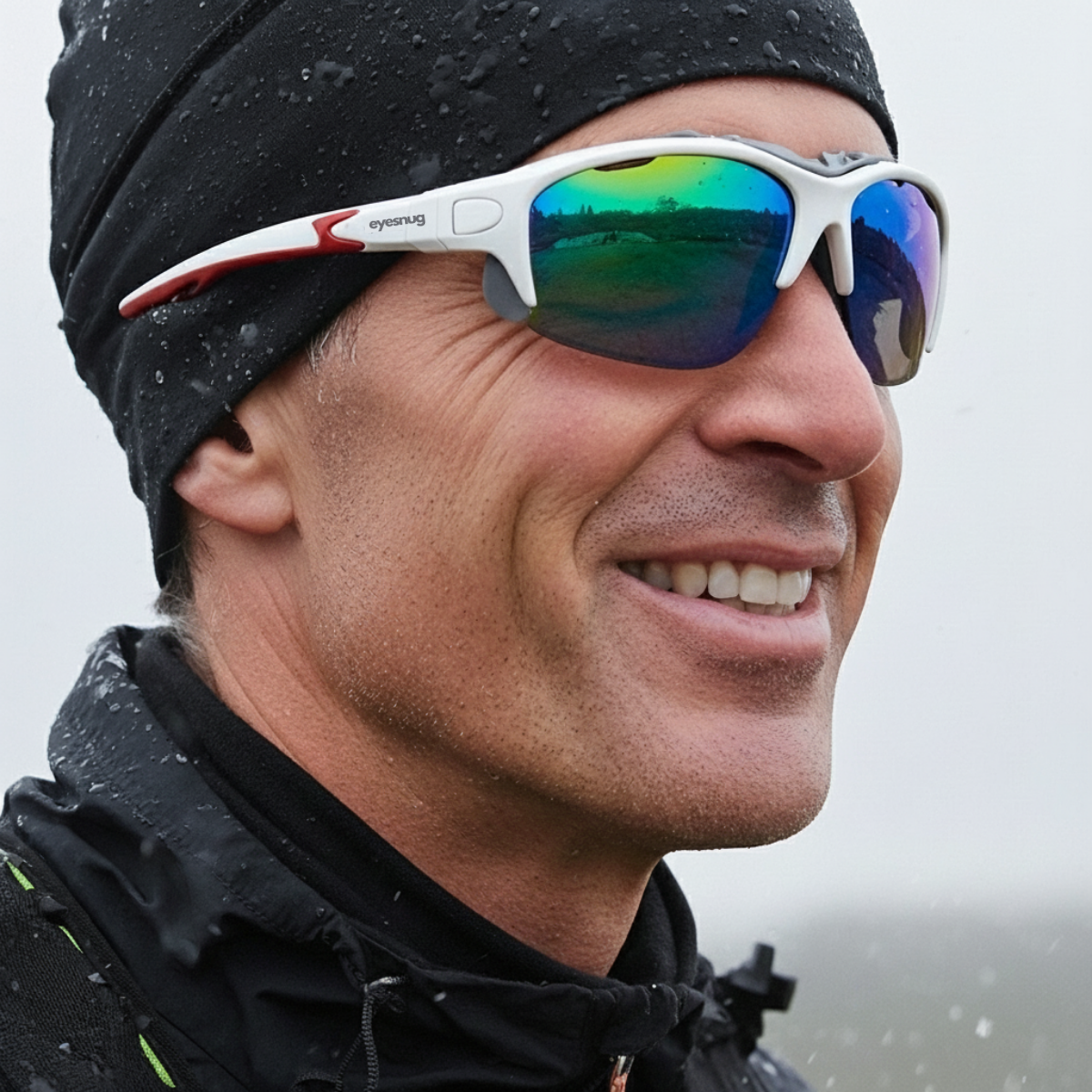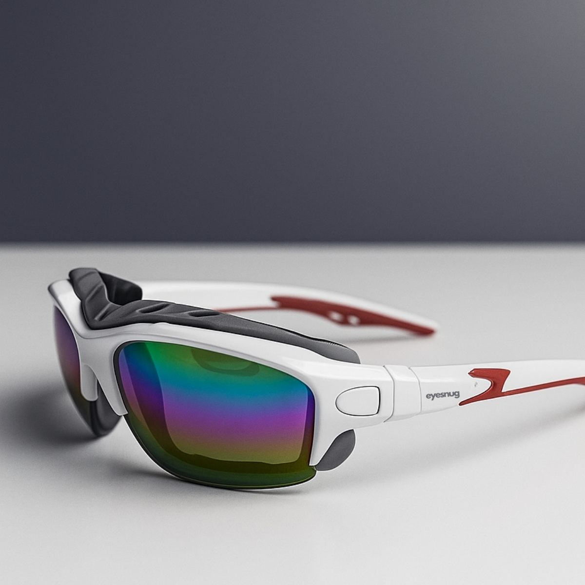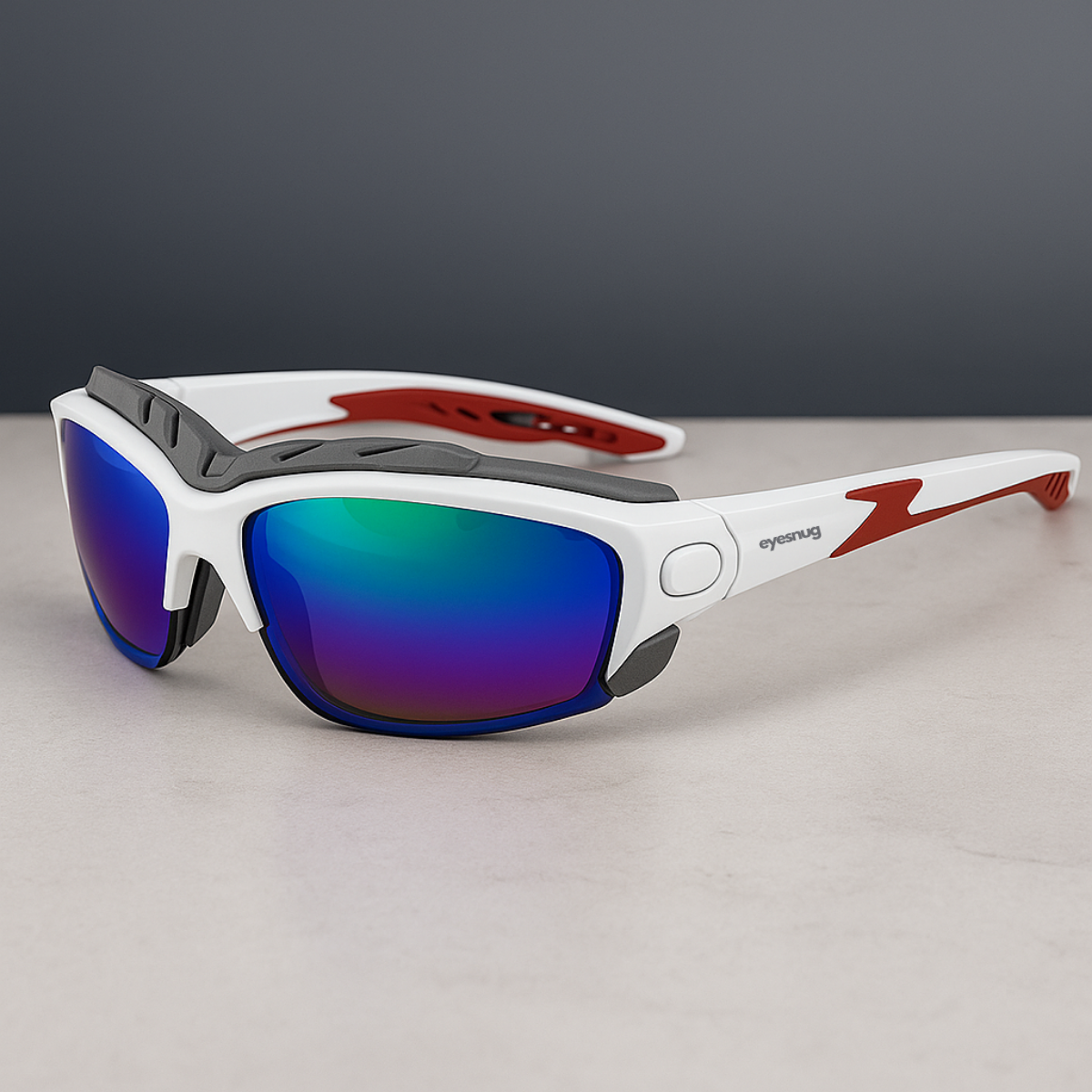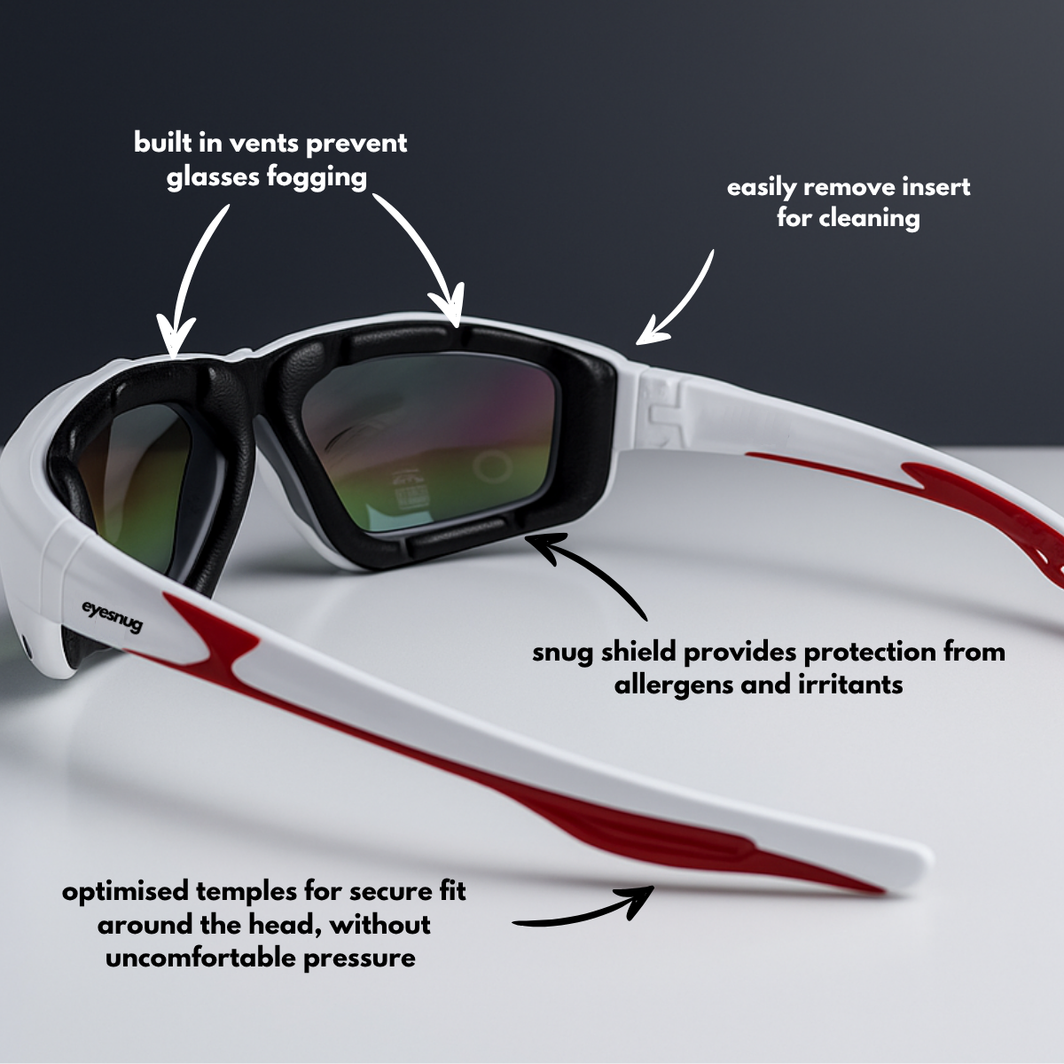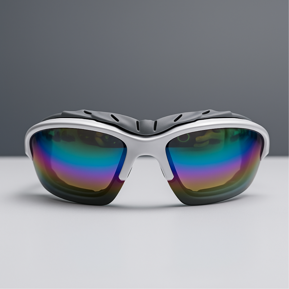 Sporty wraparound sunglasses with a protective foam insert to shield against wind, dust, and irritants.
