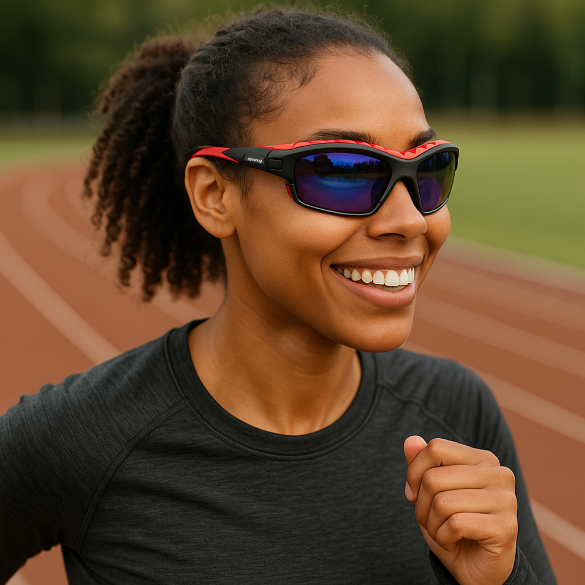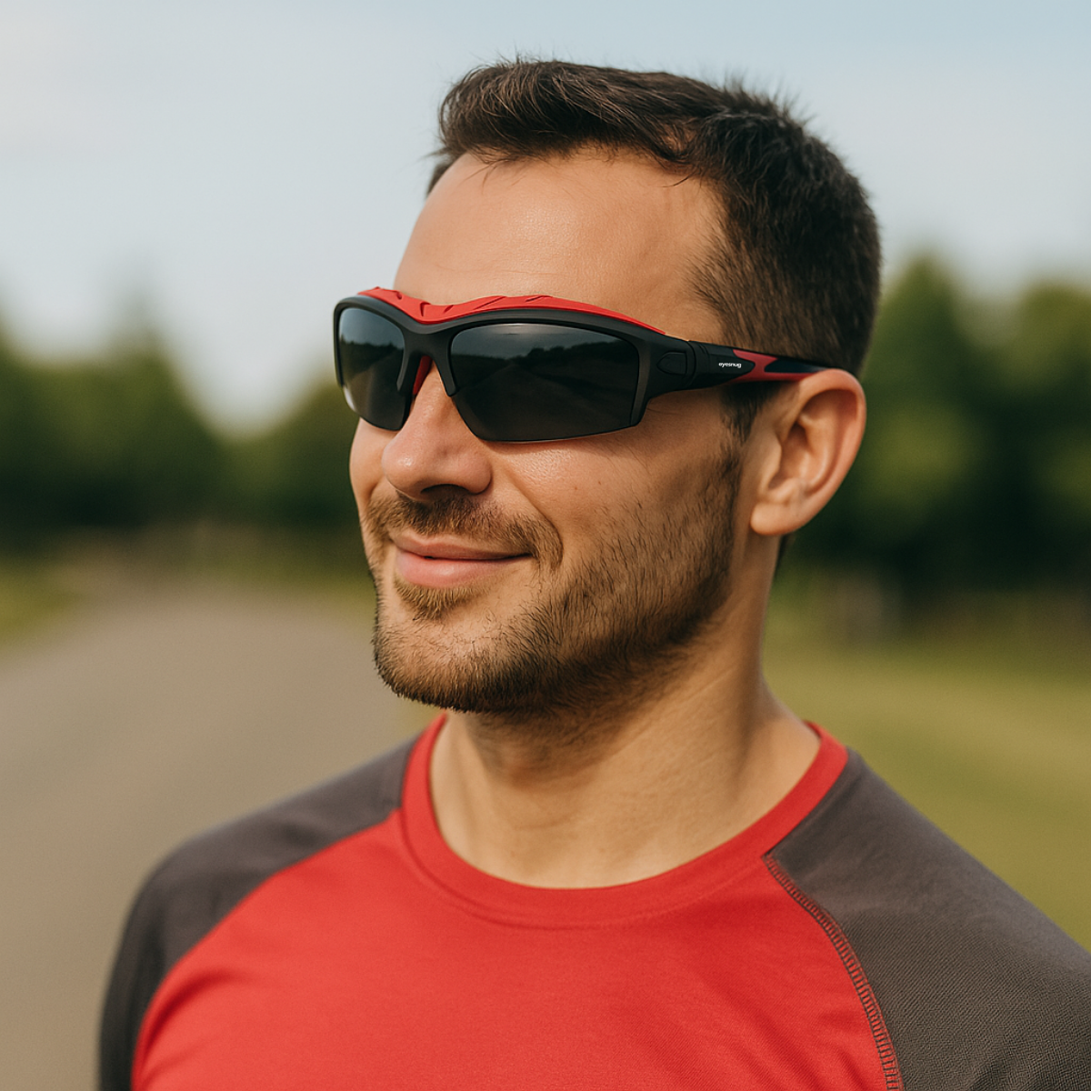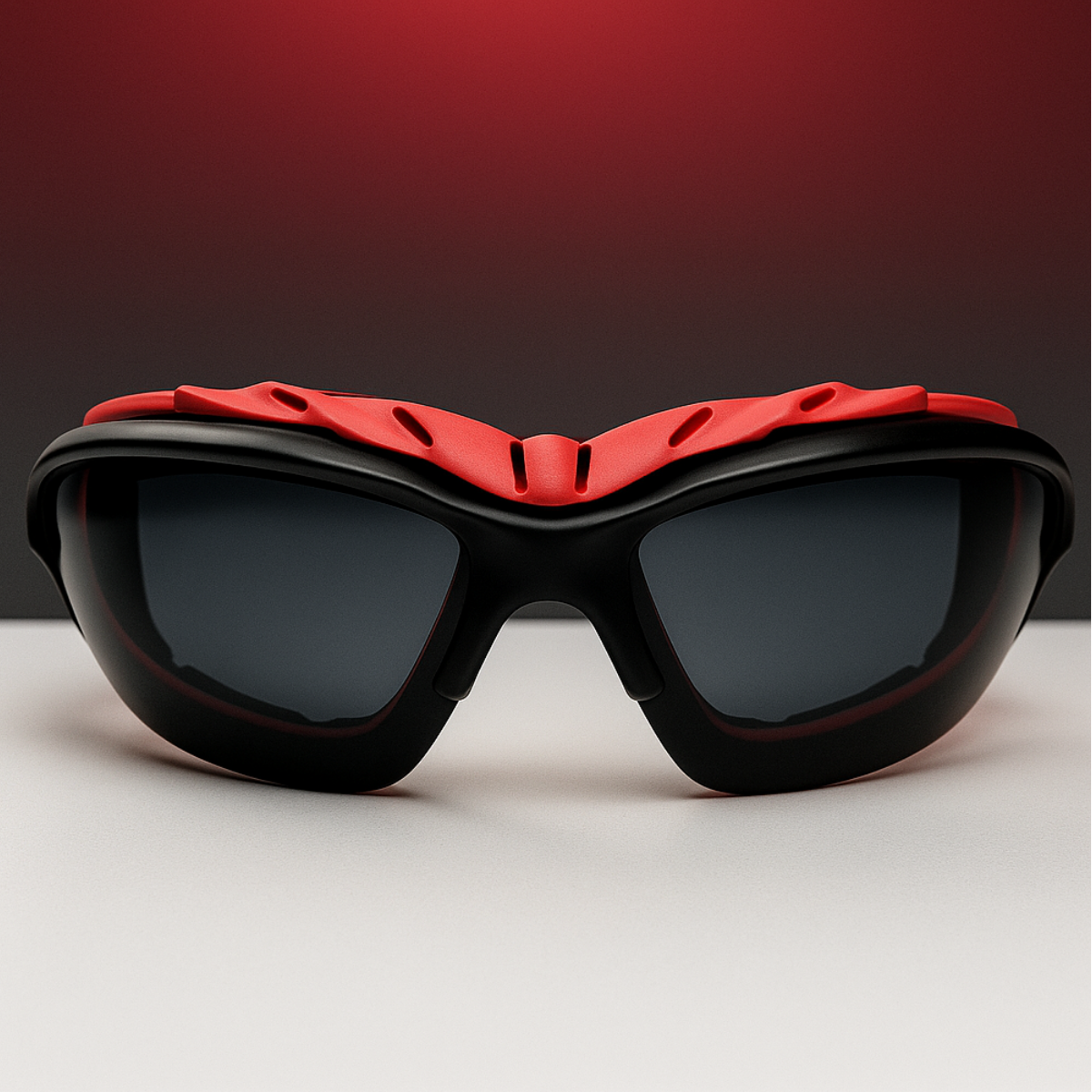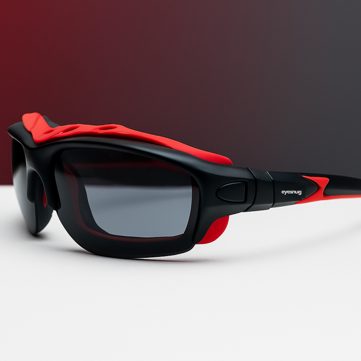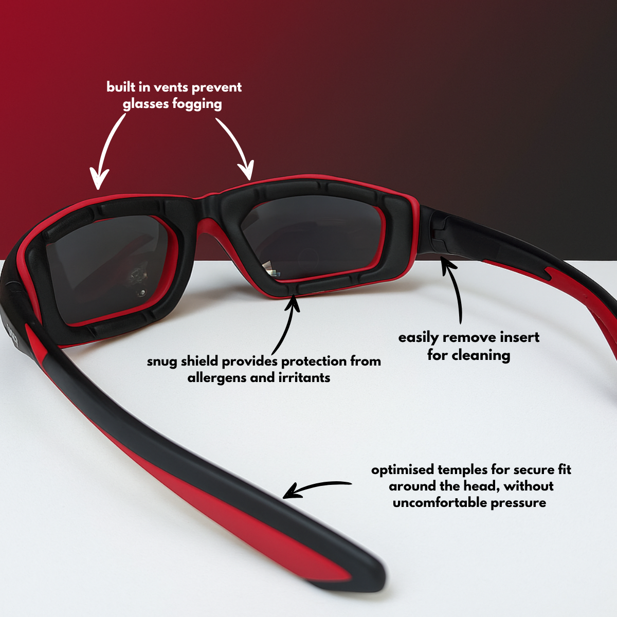 Sporty wraparound sunglasses with a protective foam insert to shield against wind, dust, and irritants.