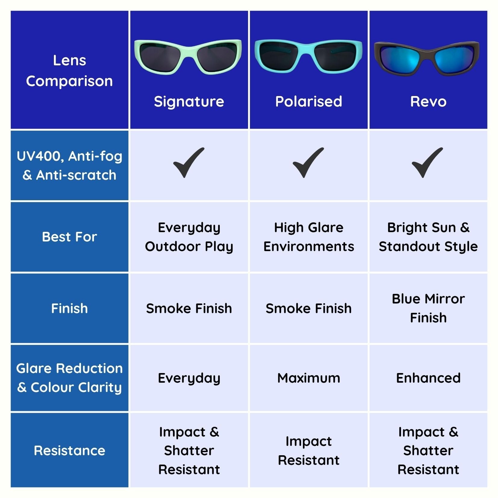 Wraparound style with Snug Shield padding gives maximum coverage, for enhanced eye protection. Robust frames, impact and scratch-resistant lenses, with a secure fit made to stay put through every adventure.